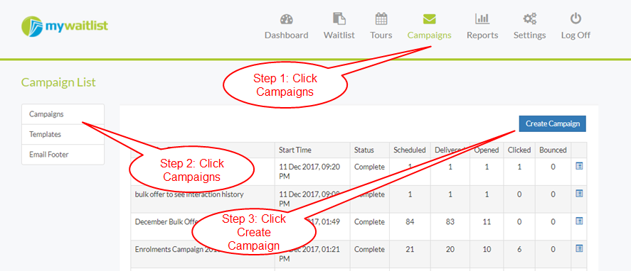 A bulk offer campaign allows centres to send a letter of offer to multiple families on your waitlist. It is the same process as sending a single offer, however you have the added benefit of tracking the deliverability of your offer and analysing each family's engagement by viewing the campaign report and analytics.