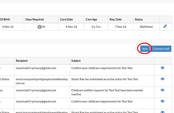 1. Navigate to the waitlist application summary page (for information on searching your waitlist click here) and click on the "New" button above the interaction summary.